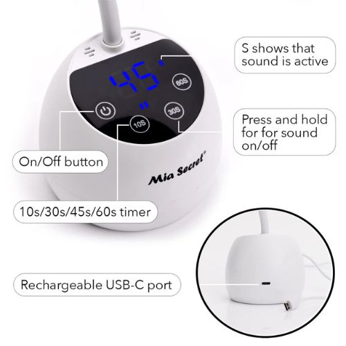 La lámpara LED/UV Mia Secret para puntas de gel es una potente solución de curado inalámbrica, diseñada para ofrecer eficiencia y facilidad de uso en aplicaciones profesionales y domésticas. Equipada con 12 luces LED de alto rendimiento que ofrecen 36 vatios de potencia de curado, esta lámpara garantiza un curado rápido y uniforme de puntas de gel y otros productos de gel. Con una elegante interfaz de pantalla táctil, sensor de movimiento integrado y temporizador preestablecido, ofrece una experiencia intuitiva para cualquier técnico de uñas. Su diseño recargable proporciona flexibilidad y portabilidad, lo que la hace perfecta para servicios en movimiento o para uso en salón.